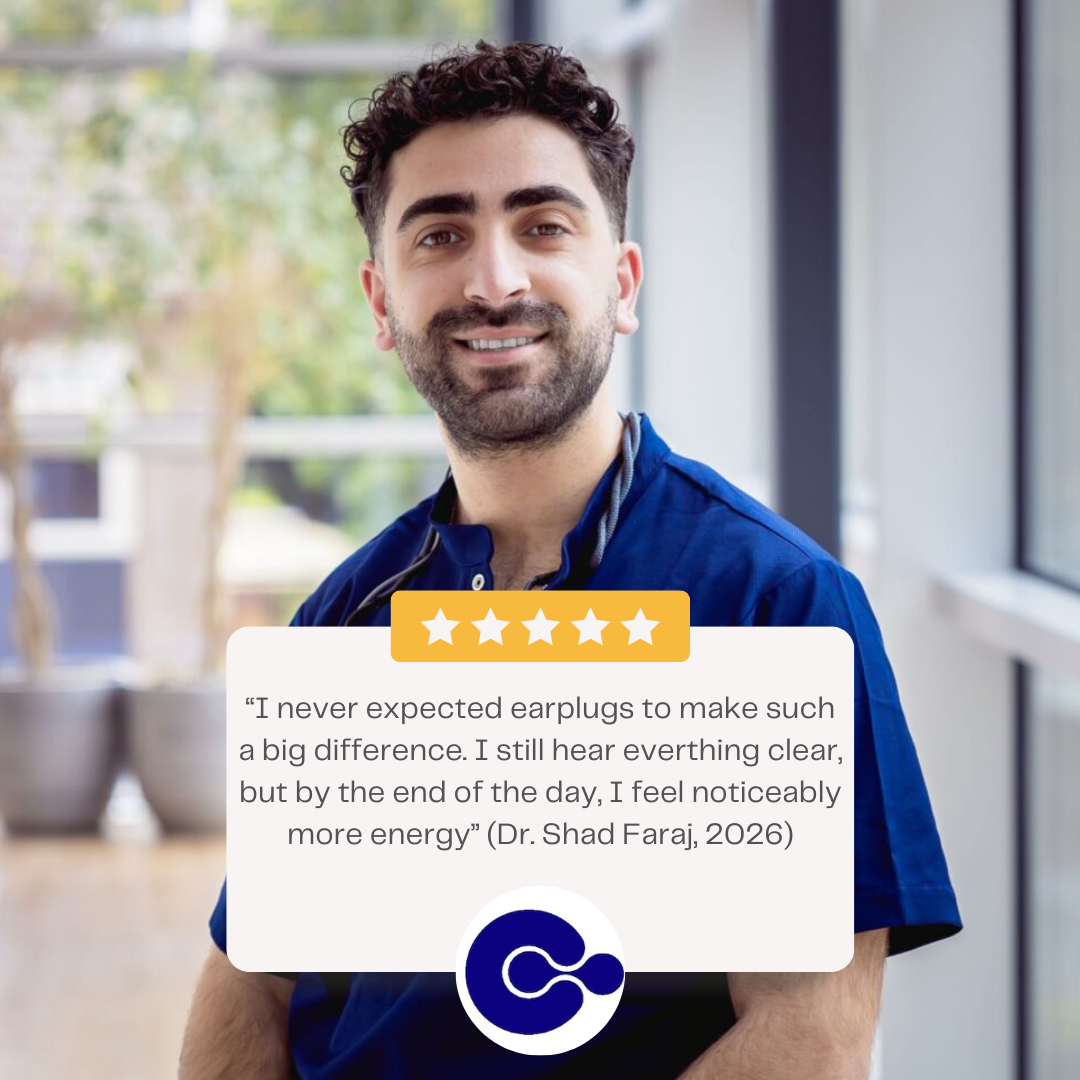 “I never expected earplugs to make such a big difference. I still hear everthing clear, but by the end of the day, I feel noticeably more energy” (Dr. Shad Faraj, 2026)